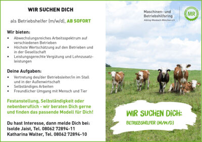 Betriebshilfe leisten, bedeutet mehr als nur Geld verdienen. In den Einsätzen hilft man Berufskollegen in Notsituationen, sammelt Erfahrungen, lernt neue Menschen kennen und bekommt Einblick in die verschiedenen Produktionsbereiche.